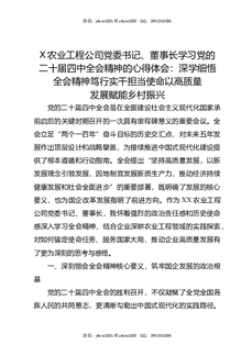 农业工程公司党委书记,董事长学习党的二十届四中全会精神的心得体会.docx