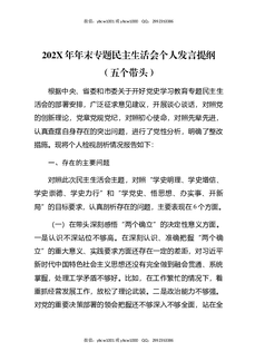 202X年年末专题民主生活会个人发言提纲(五个带头).docx