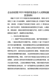 企业总经理202X年组织生活会个人对照检查发言材料.docx