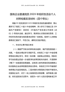 国有企业普通党员202X年组织生活会个人对照检查发言材料(四个带头).docx