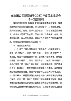 在集团公司领导班子202X年度民主生活会个人发言提纲.docx