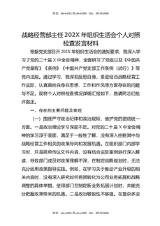 战略经营部主任202X年组织生活会个人对照检查发言材料.docx
