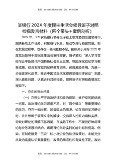 某银行202X年度民主生活会领导班子对照检视发言材料(四个带头,案例剖析).docx