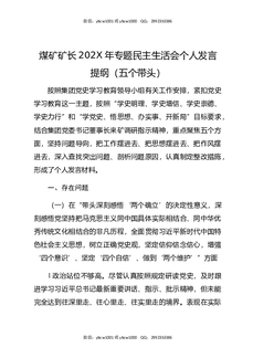 煤矿矿长202X年专题民主生活会个人发言提纲(五个带头).docx