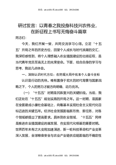 研讨发言:以青春之我投身科技兴农伟业,在新征程上书写无悔奋斗篇章.docx