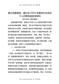 银行党委委员,副行长202X年度民主生活会个人对照检视发言材料(四个带头,违纪案例).docx