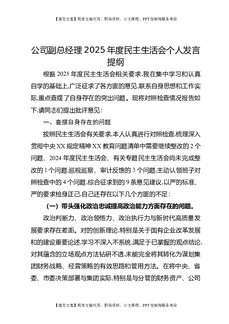 公司副总经理2025年度民主生活会个人发言提纲.docx