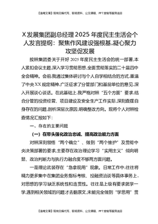 X发展集团副总经理2025年度民主生活会个人发言提纲:聚焦作风建设强根基,凝心聚力攻坚促发展.docx