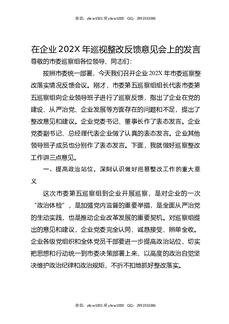 在企业202X年巡视整改反馈意见会上的发言.doc