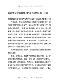 在青年企业家峰会上的发言材料汇编(5篇).docx