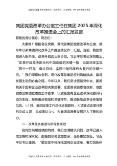 集团党委改革办公室主任在集团2025年深化改革推进会上的汇报发言.docx