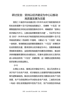 研讨发言:坚持以经济建设为中心以推动高质量发展为主题.docx