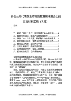 参会公司代表在全市高质量发展推进会上的发言材料汇编(3篇).docx