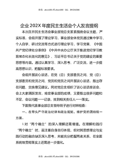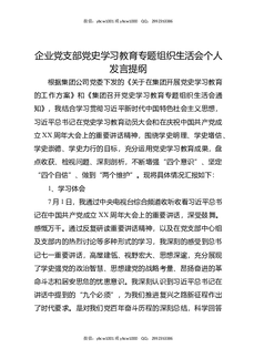 企业党支部党史XX教育专题组织生活会个人发言提纲.docx