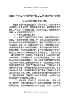 国有企业人力资源部经理202X年组织生活会个人对照检查发言材料.docx