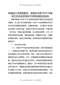 某城投公司党委委员,监事会主席202X年度民主生活会领导班子对照检视发言材料.docx