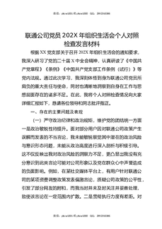 联通公司党员202X年组织生活会个人对照检查发言材料.docx