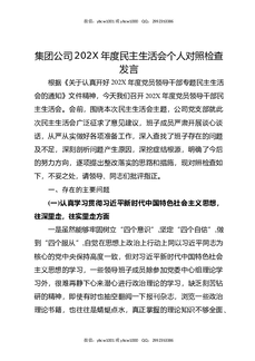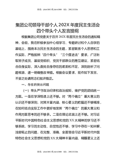 集团公司领导干部个人202X年度民主生活会四个带头个人发言提纲.docx