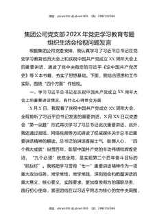 集团公司党支部202X年党史XX教育专题组织生活会检视问题发言.docx