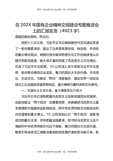 202X年国企精神文明建设专题推进会上的汇报发言.docx
