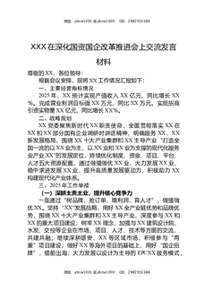 XXX在深化国资国企改革推进会上交流发言材料.docx