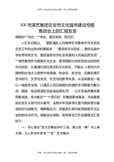 XX市演艺集团在全市文化强市建设专题推进会上的汇报发言.docx