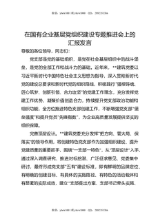 在国有企业基层党组织建设专题推进会上的汇报发言.docx
