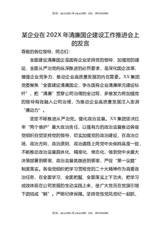 某企业202X年清廉国企建设工作推进会上的发言.docx