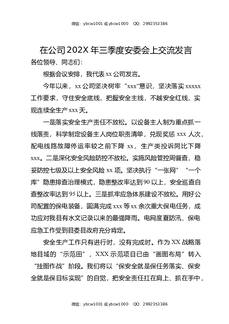 在公司202X年三季度安委会上交流发言.docx