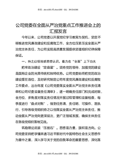 公司党委在全面从严治党重点工作推进会上的汇报发言.docx