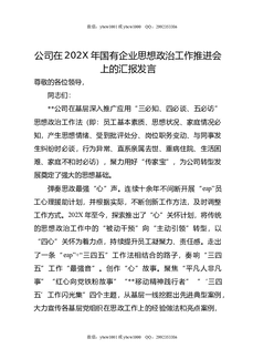 公司在202X年国有企业思想政治工作推进会上的汇报发言.docx