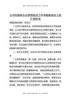 公司在国有企业思想政治工作专题推进会上的汇报发言.docx