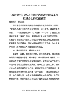 公司领导在202X年国企思想政治建设工作推进会上的汇报发言.docx