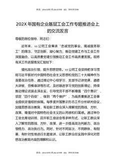 202X年国企基层工会工作专题推进会上的交流发言(公司).docx