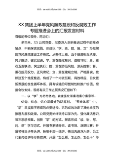 XX集团上半年党风廉政建设和反腐败工作专题推进会上的汇报发言材料.docx