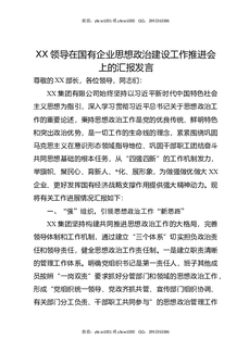 XX领导在国有企业思想政治建设工作推进会上的汇报发言.docx