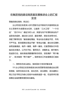 在集团党的建设高质量发展推进会上的汇报发言.docx