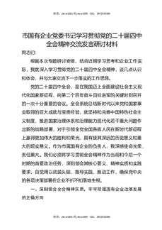 市国有企业党委书记学习贯彻党的二十届四中全会精神交流发言研讨材料.docx