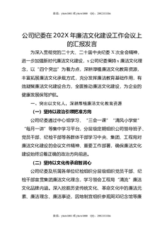 公司纪委在202X年廉洁文化建设工作会议上的汇报发言.docx