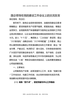 国企领导在党的建设工作会议上的交流发言.docx