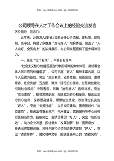 公司领导在人才工作会议上的经验交流发言.docx