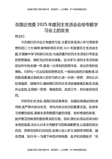 在国企党委2025年度民主生活会会前专题学习会上的发言.docx