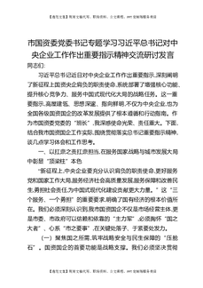 市国资委党委书记专题学习习近平总书记对中央企业工作作出重要指示精神交流研讨发言.docx