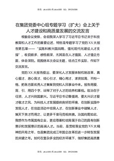 在集团党委中心组专题学习(扩大)会上关于人才建设和高质量发展的交流发言.docx