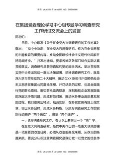 在集团党委理论学习中心组专题学习调查研究工作研讨交流会上的发言.docx