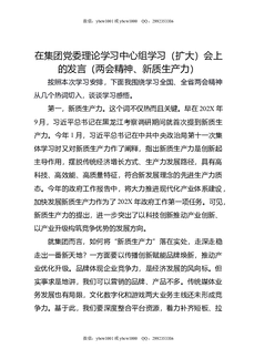 在集团党委理论学习中心组学习(扩大)会上的发言(两会精神,新质生产力).docx