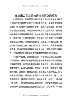 在集团公司主题教育读书班交流发言.docx