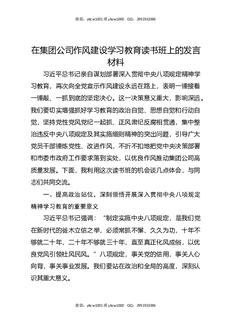 在集团公司作风建设XX教育读书班上的发言材料.docx