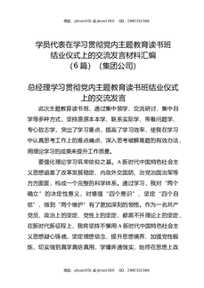 学员代表在学习贯彻党内主题教育读书班结业仪式上的交流发言材料汇编(6篇)(集团公司).docx