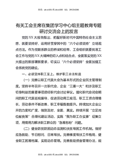 有关工会主席在集团学习中心组主题教育专题研讨交流会上的发言.docx